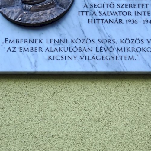 Az emléktábla felirata: "Embernek lenni közös sors, közös valóság...