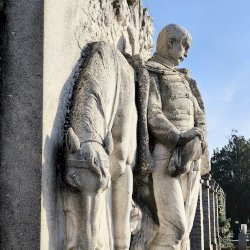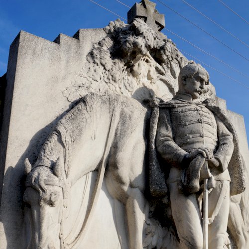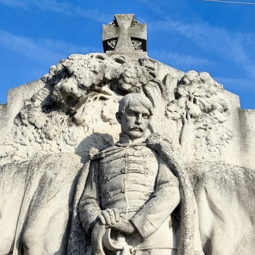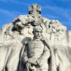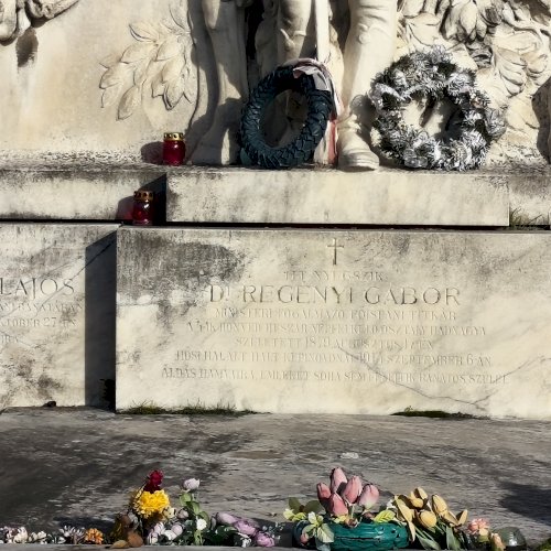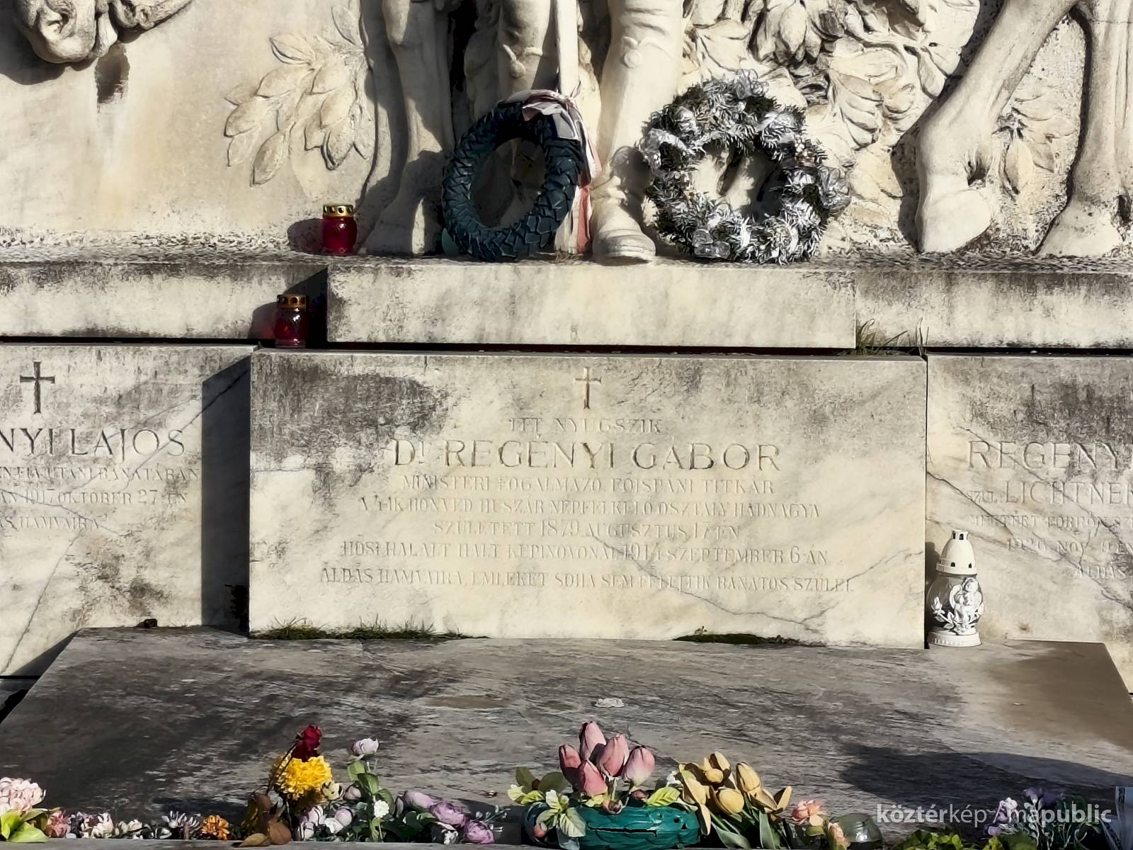 "Regényi Gábor huszárhadnagy egész alakos, szomorú tekintetű, különleges szobra ott magasodik a Bajai úti temető egyik bejárata mellett, a Kálvária közelében. Az I. világháború során 1914 augusztusában kezdődött a Szerbia elleni hadjárat, a szabadkaiakat két gyalogezredbe, valamint egy honvéd huszárezredbe is besorozták. A tragikus sorsú Magyar Királyi 4. Honvéd Huszárezred félszáz huszárja esett hadifogságba szeptember elején. A kivégzettek között volt Regényi Gábor is, szülei ezt nagy tragédiaként élték meg, hiszen a holttestét sem találták meg, ám egy évvel később halottnak nyilvánították." [5]