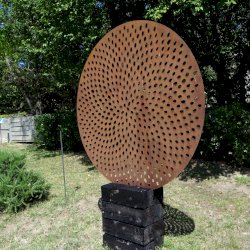 Előzmény: 2022-ben kerámiából készült egy rokon alkotás. Akkor a látogatók elvihettek magukkal egy-egy magot, egy gondolatot "a hazához való kötődésről". Az eredmény, az üres forma, ami most újjászületett fémből, emlékezés "nem a múlt dicsőségének, hanem annak, ami hiányzik belőle."