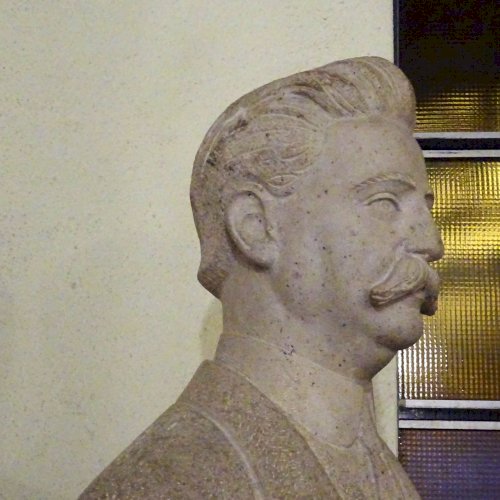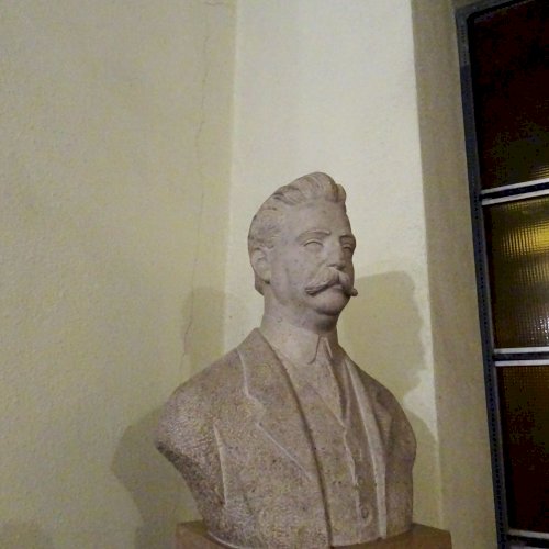 Infó jött, megkeresés: alapos tisztítás után megérkezett újabb, lehetőleg végleges helyére a sokat megjárt Bokány-mellszobor a Szakszervezetek házába, a Benczúr utcába.