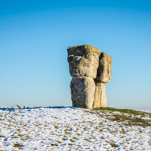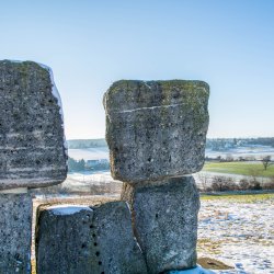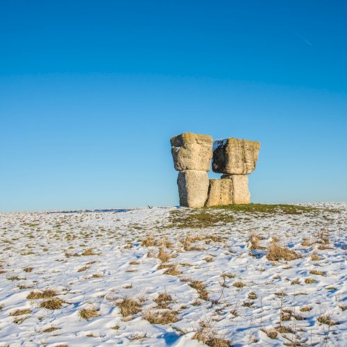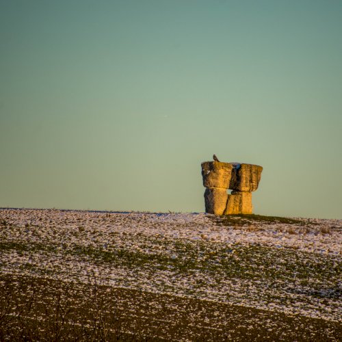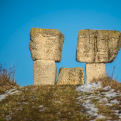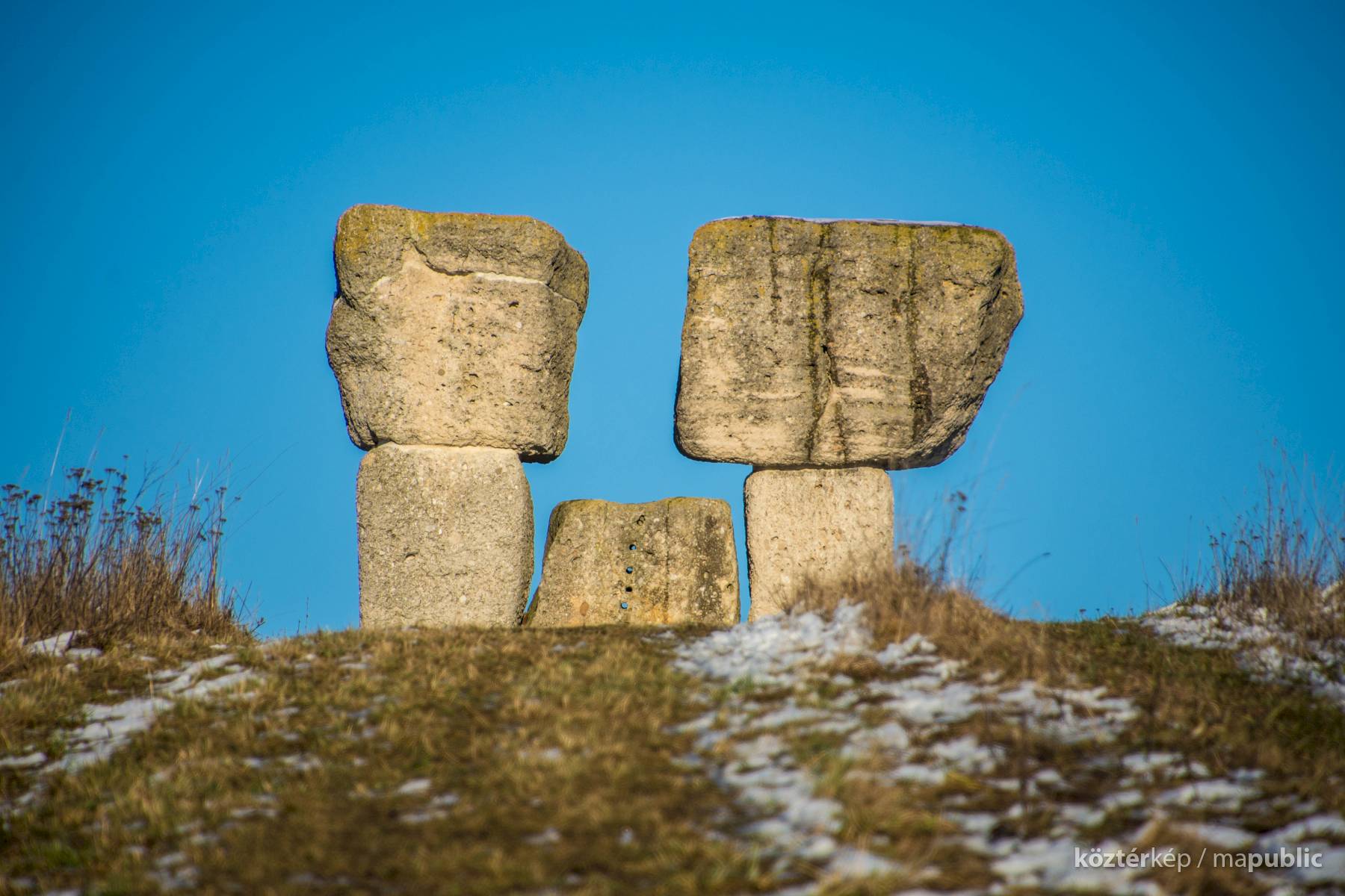 Barátainak, alkotótársainak Pecsenyéd határában, a falu fölé magasodó lankákon számos modern kőszobra található.