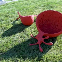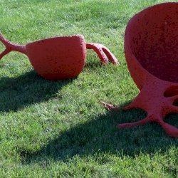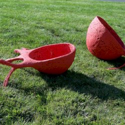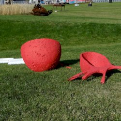 Grátisz én most egyszerűen nem tudom a két alkotásnak jelzett, egy tőről fakadó, egymással (és minden korábbi Farkas Zsófi-alkotással) letagadhatatlan rokonságot mutató szobrokat szétválasztani. Nagyon közel rakták le őket egymáshoz és a szervezői, netán alkotói elképzeléssel szembe menni sem akarok (így látszólag megint egy elv, de kicsit is megnézve tényleg elválaszthatatlanok).