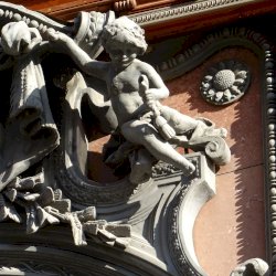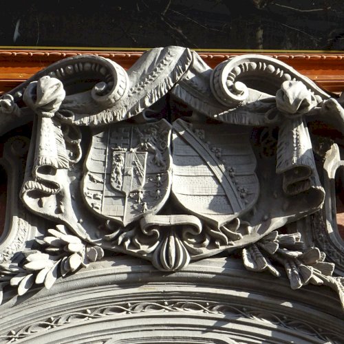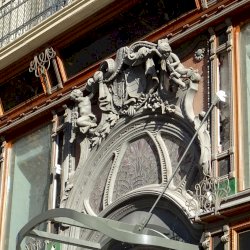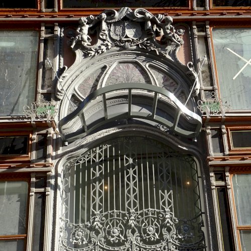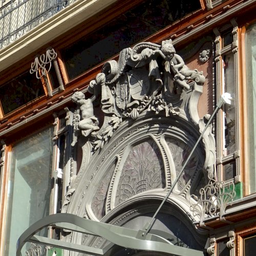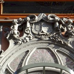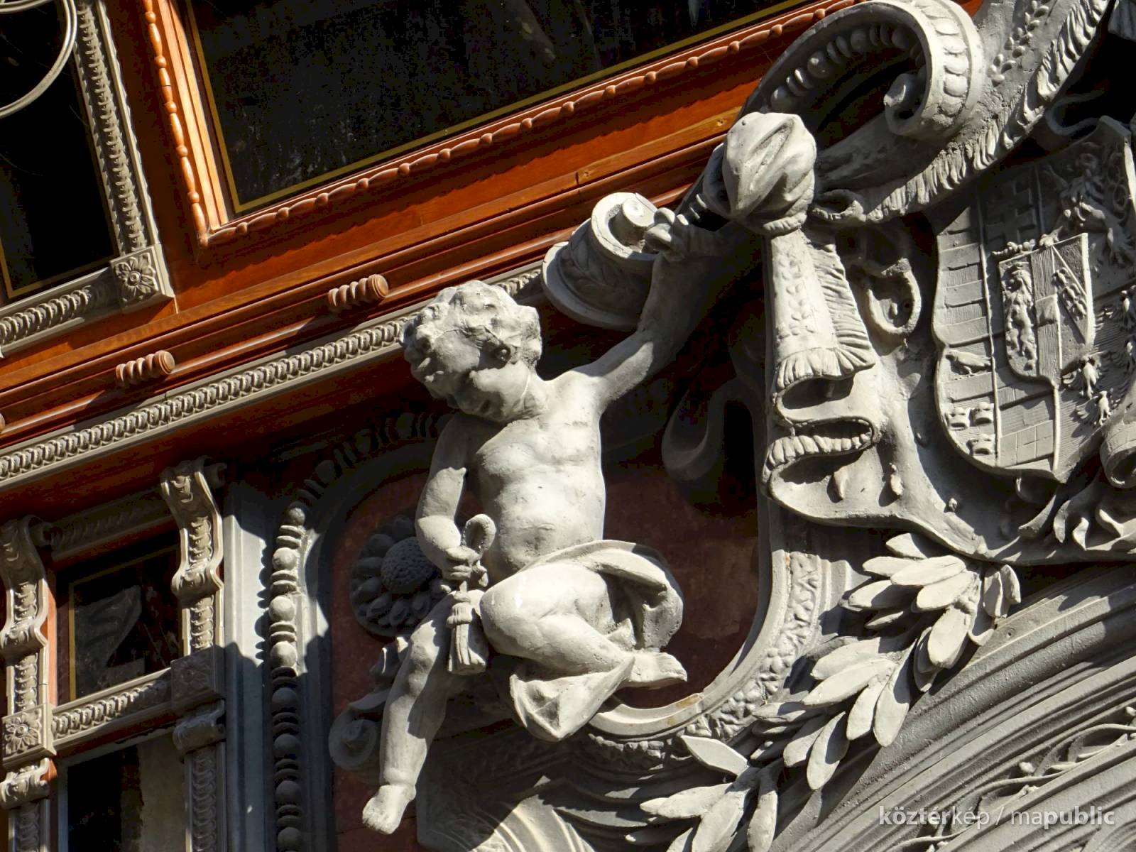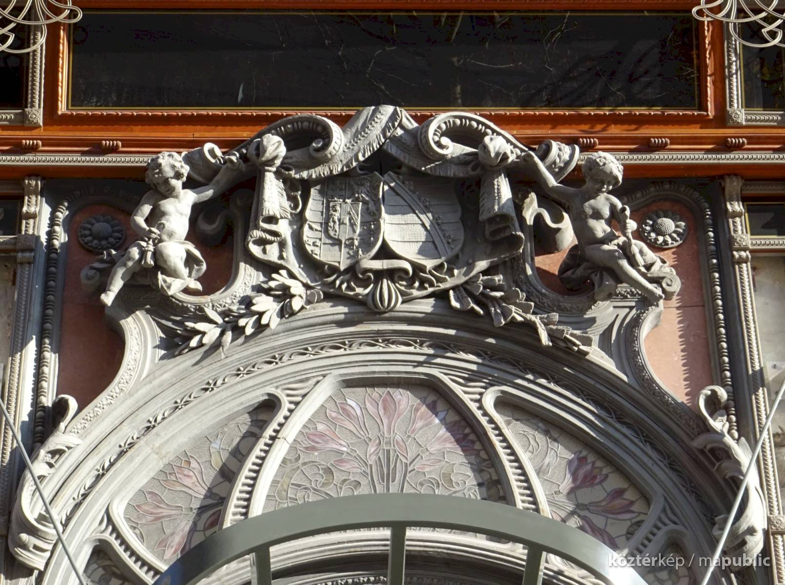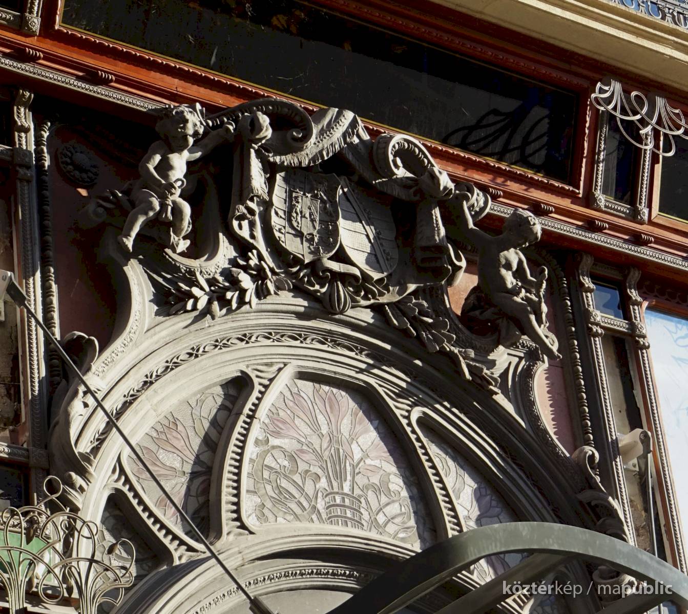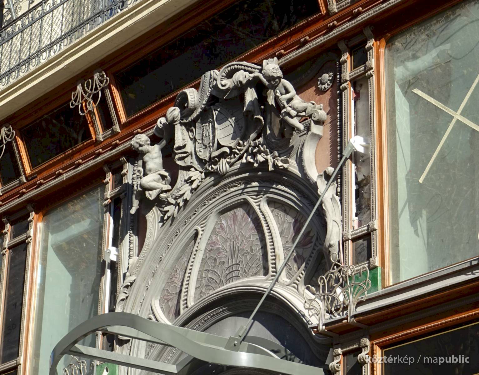 Éppen két éve, hogy elkészült a testvér, a Matild palota Váci utcára néző kapujának és a felette elhelyezett díszes címer műlapja. A két időpont között többször jártam a testvér-épületnél. Láttam, hogy ott egy nagyon hasonló (most már látom, azonos) kivitelezésű kapu készül, de nagyon nem lehetett a közelébe jutni. .. építési terület.