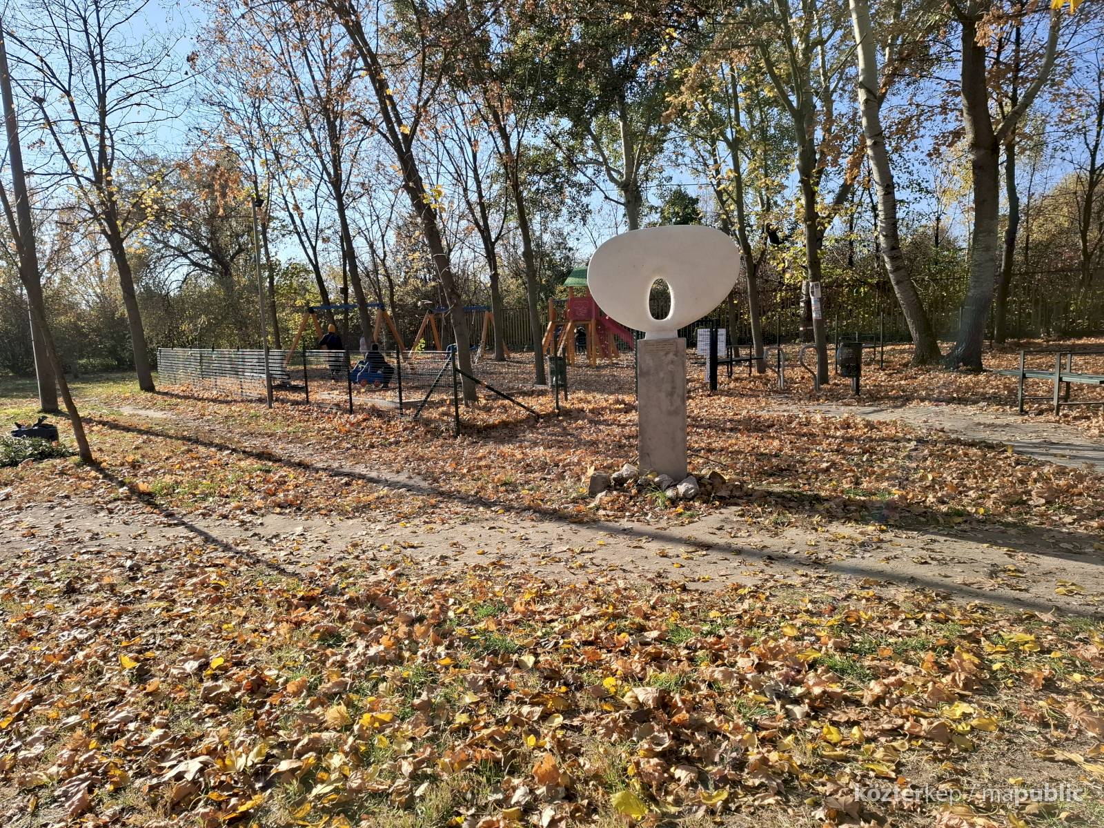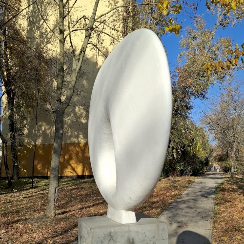 Ez a betonplasztika 1986-ban a házgyár belső parkosított területére került.