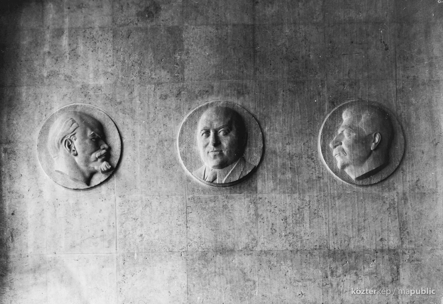 Lenin, Rákosi és Sztálin domborművek
