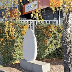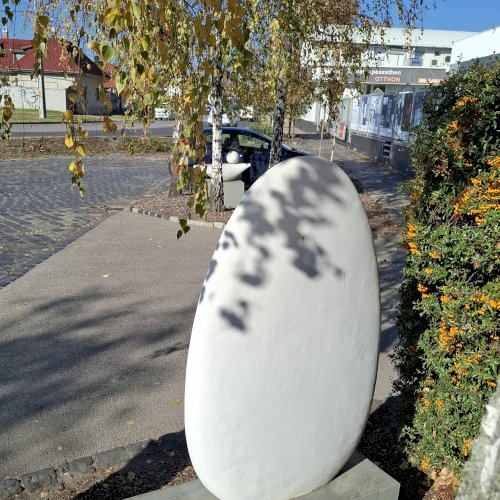 Ez a betonplasztika 1986-ban a házgyár belső parkosított területére került.