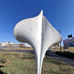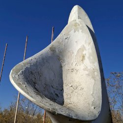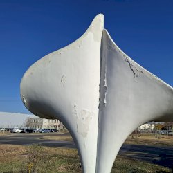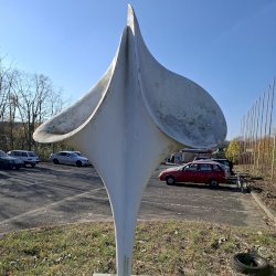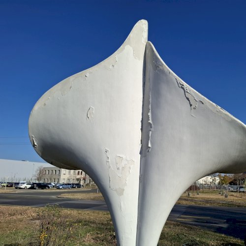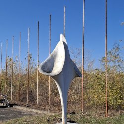 2022 nyarán a másik három alkotás új helyre került, de a Városi tölcsér maradt.