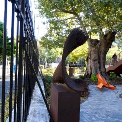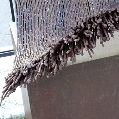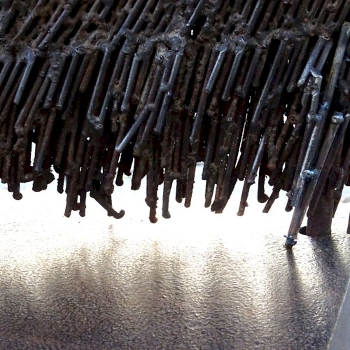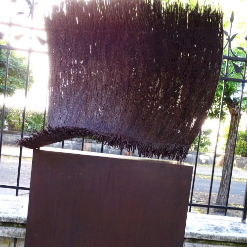 A művész a Káli Art Parkban anno megismert alkotása kapcsán nyilatkozott az akkor, ott kiállított alkotásról. A rokonság nyilvánvaló, idézem az ott elhangzottakat. "...Úgy gondolom, bőven elegendő az a plasztikai mozgás, melyet a hegesztés közben torzuló anyag kreál. A forma és a hozzá kapcsolódó szellős tömeg kiegyensúlyozottan él együtt. Törekvésem csupán olyan szobrászilag minősített „helyek” létrehozására irányul, ahol tér és forma, amennyire csak lehetséges, akadálytalanul közlekedik egymásban. " [2]