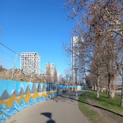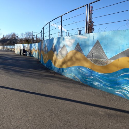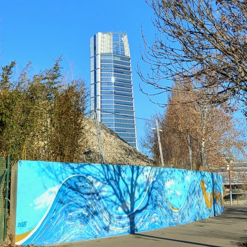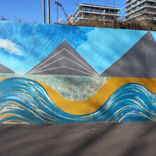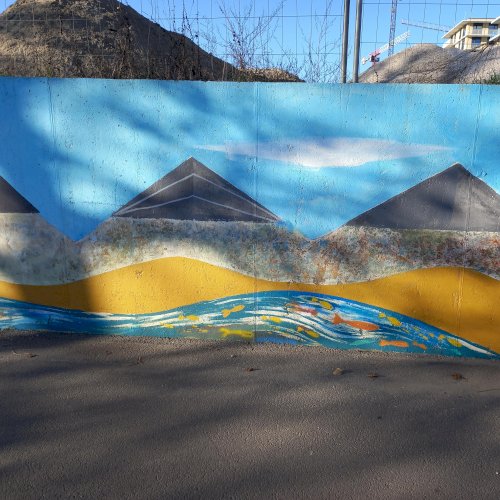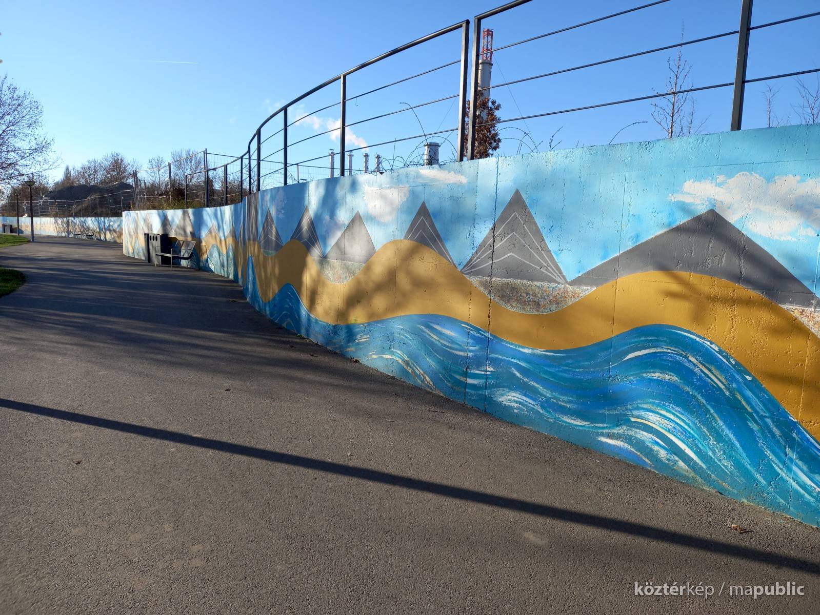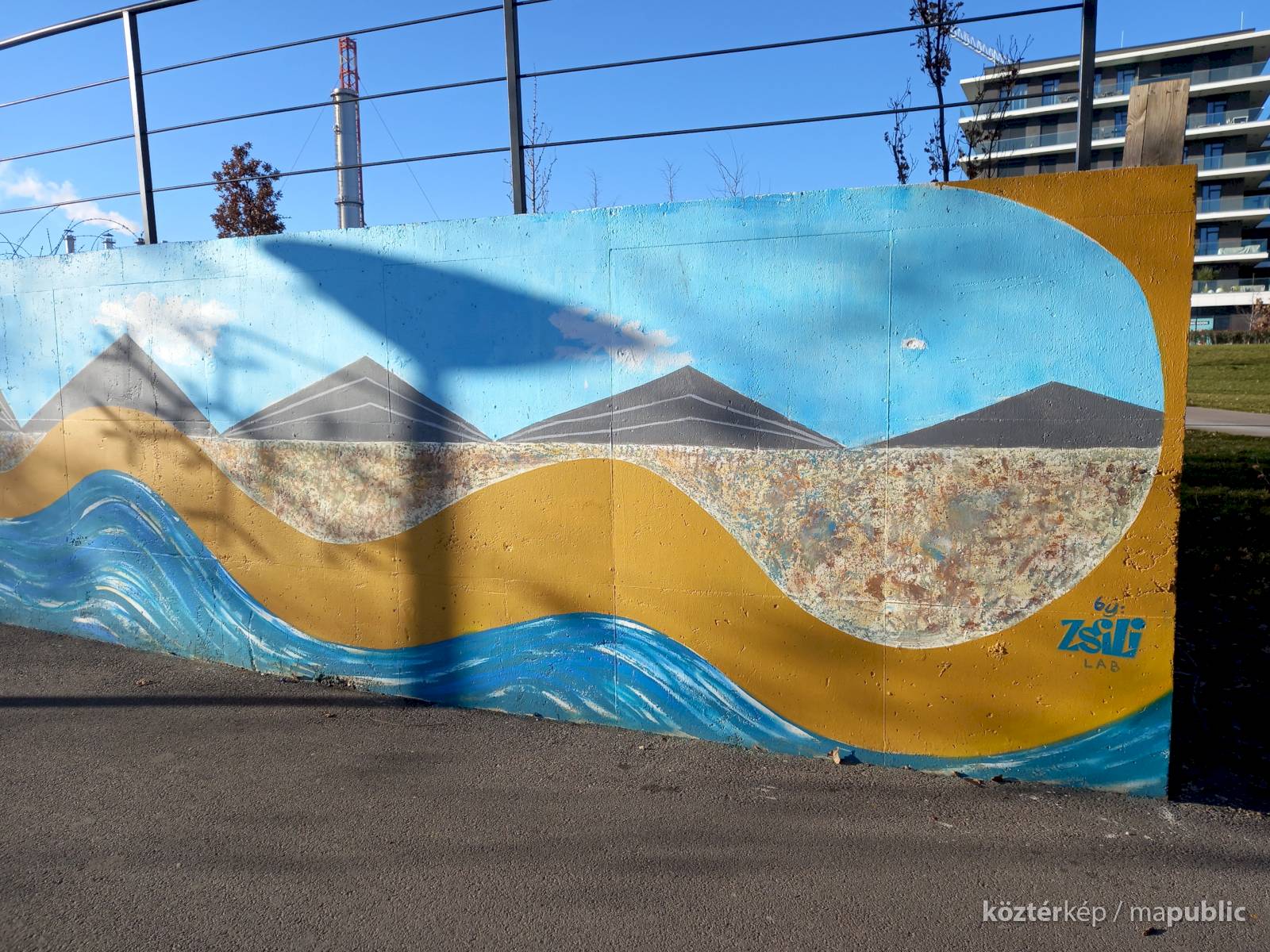 "A Lágymányosi-öböl partján futó, százméteres betonfal már nem egy egyszerű ipari fal, hanem egy vibráló, élő városi tájkép: A mű, Babos Bertalan „Zsili” legújabb street art alkotása, egy olyan vizuális kompozíció, amely egyszerre idézi meg a természet szépséget, a Duna hullámzó nyugalmát és a modern város karakteres vonalait.