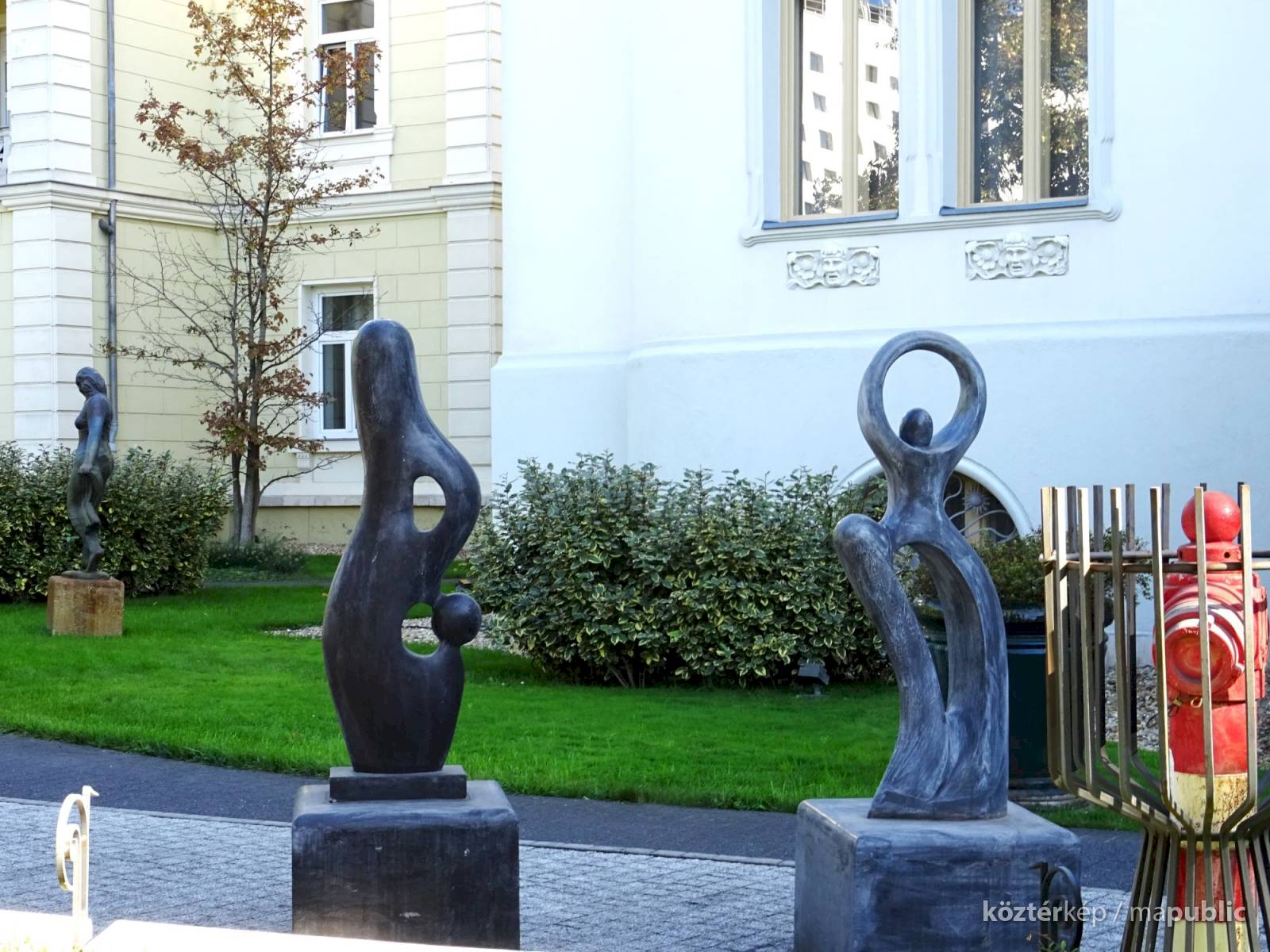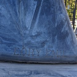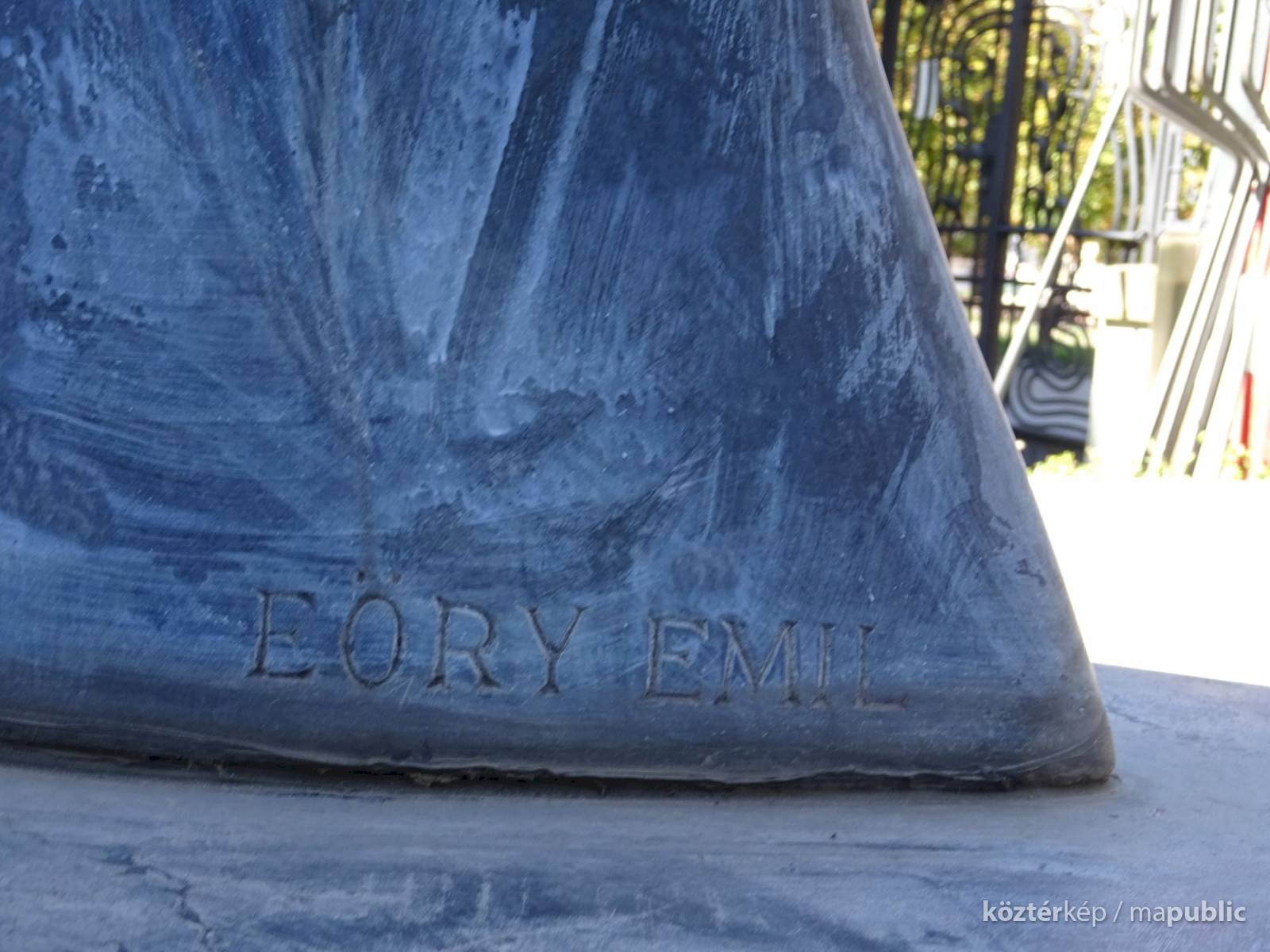 Meglepő módon, két olyan szobor került az épület előtti területre, amin van szignó. Nem emlékszem, hogy itt álltak volna. Viszont csak az egyiket sikerült azonosítani, de annak alkotója nem akárki! Eőry Emil, a nem is olyan rég elhunyt szobrászművész kézjele olvasható rajta.