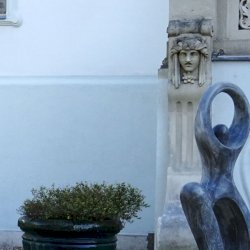 Úgy érzem, most valami változott a Kőrössy-villa intézménye működésében, példa erre az Apáti Abt Sándor alkotásának kiállítása úgy, hogy nem csak kivételezett vendégek, hanem bárki szabadon megtekinthette, bár csak rövid ideig... utána már zárt kiállításon. Ott is voltam, csodáltam. De ha már bejutottam és a Zsolnay-kötődésű szobrot fotóztam, néhány további szobor fotózására is engedélyt kaptam.