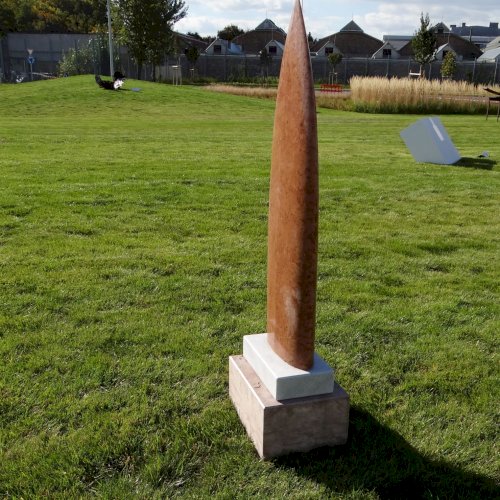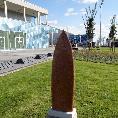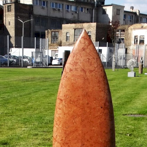 Tehát, a sorozat első darabjaként a Vörös lándzsa 2010-ben jött létre. Anyaga tardosi mészkő, ami egyben a jellegzetes vörös színét is adja. Ez a sorozat egyike Kontur András autonóm kísérleteinek, aminek célja és lényege éppen a különböző anyagok formálhatóságának vizsgálata, itt is jellemző: "a letisztult formavilág és a finoman áttört részletképzés".