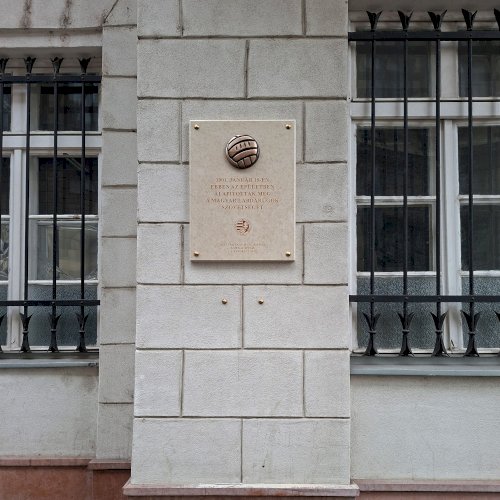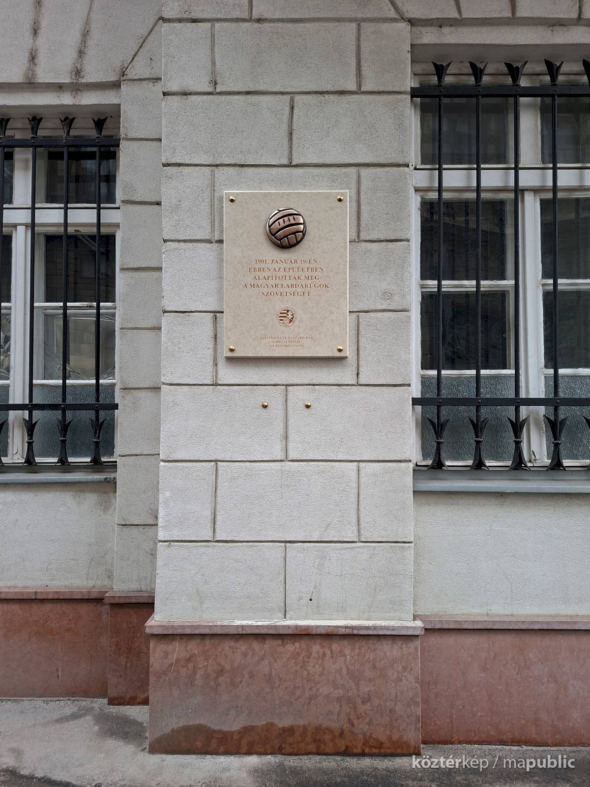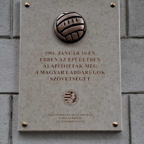 A klasszicista épület falán elhelyezett emléktáblát közösen avatta fel Csányi Sándor az MLSZ vezetője, Marco Rossi szövetségi kapitány és Löw Zsolt szakmai alelnök.