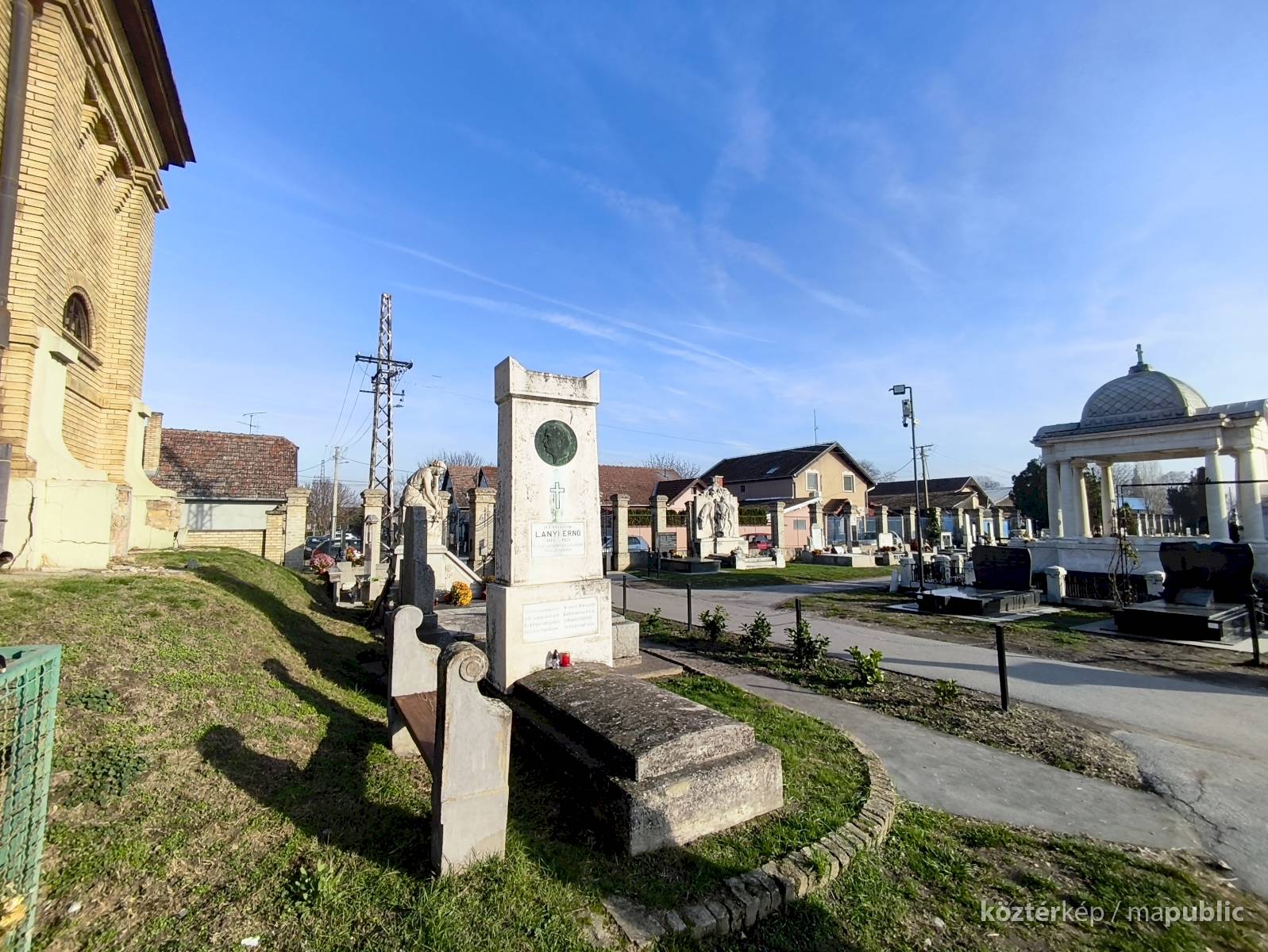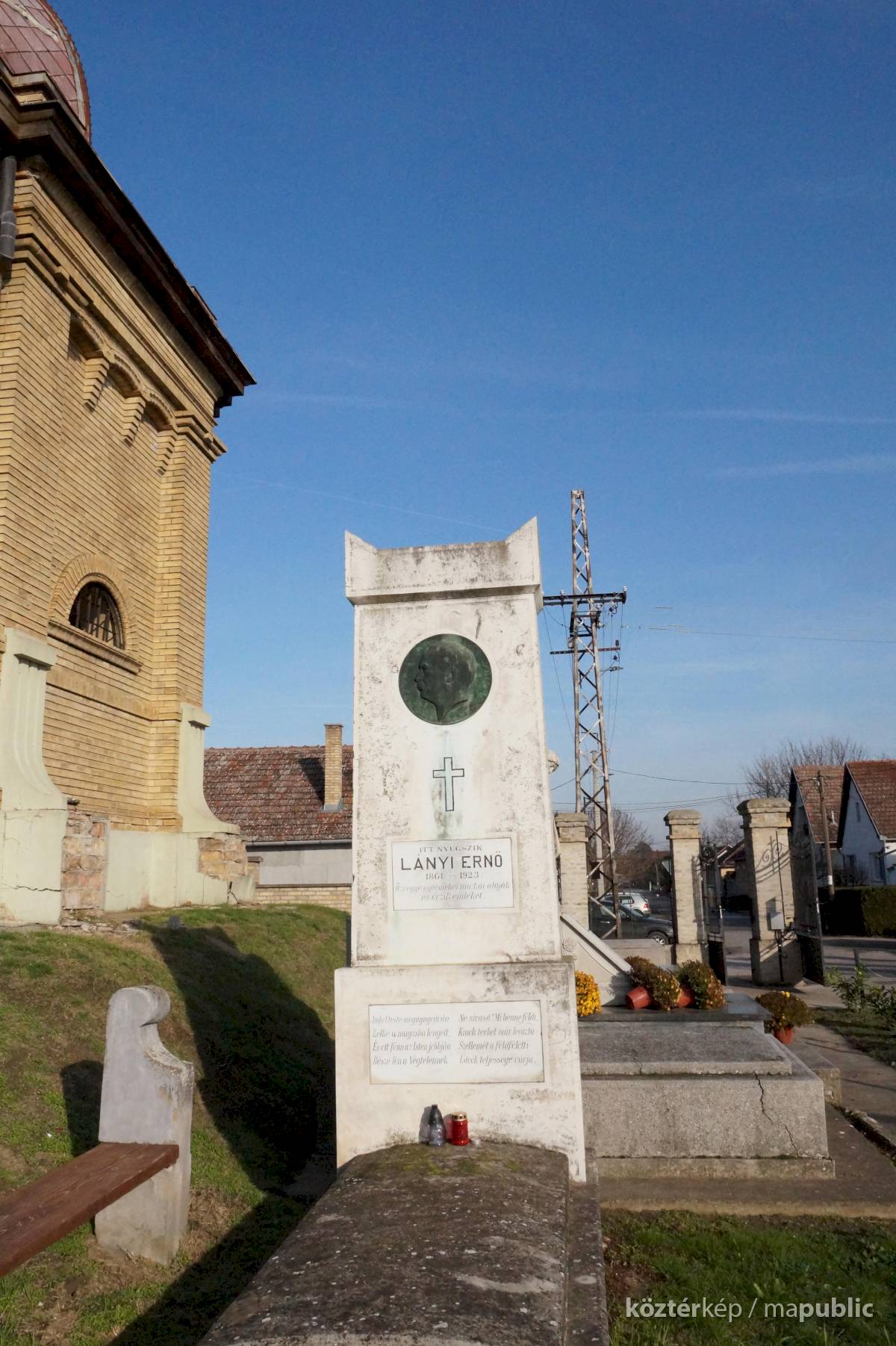 ...Lányi sírja 1941-ben került a mostani helyére. A május 28-án megtartott sírszenteléskor beszédet mondott többek között az akkori polgármester, Bárdos Lajos, a budapesti Zeneművészeti Főiskola tanára és Dunay Jenő, a Dalos Szövetség elnöke. Este ünnepi hangversenyt tartottak a Magyar Olvasókör, a mai Népkör nagytermében." [2]