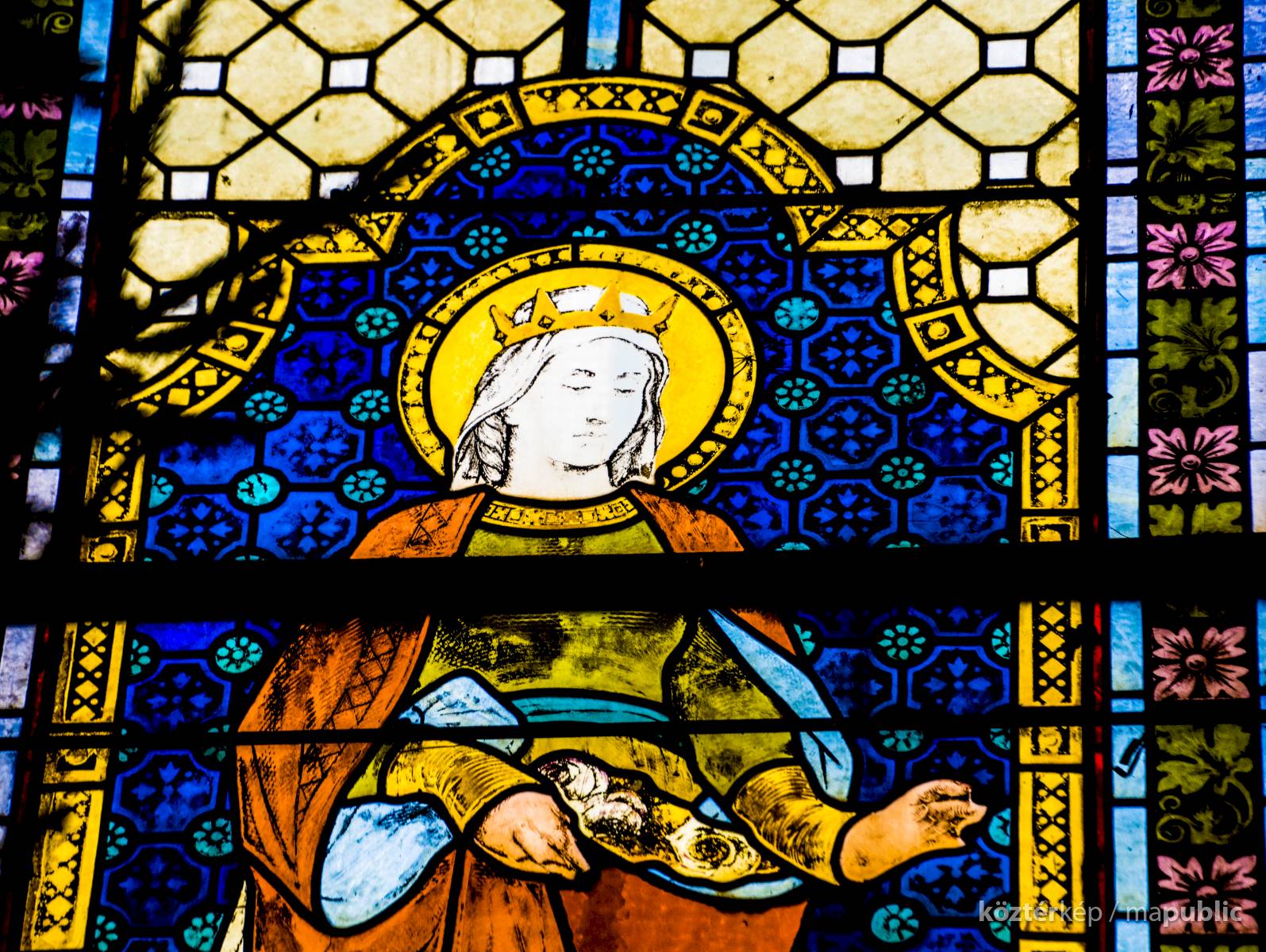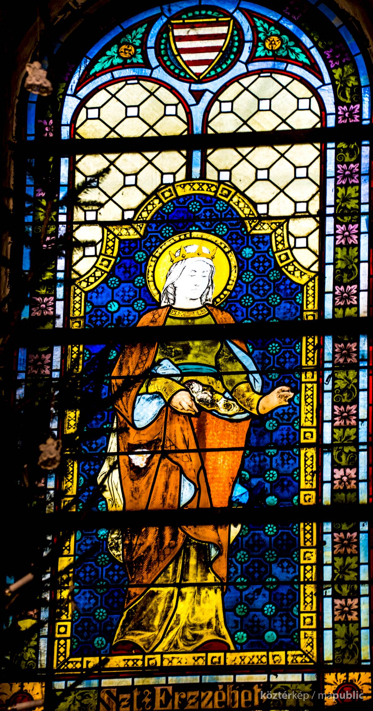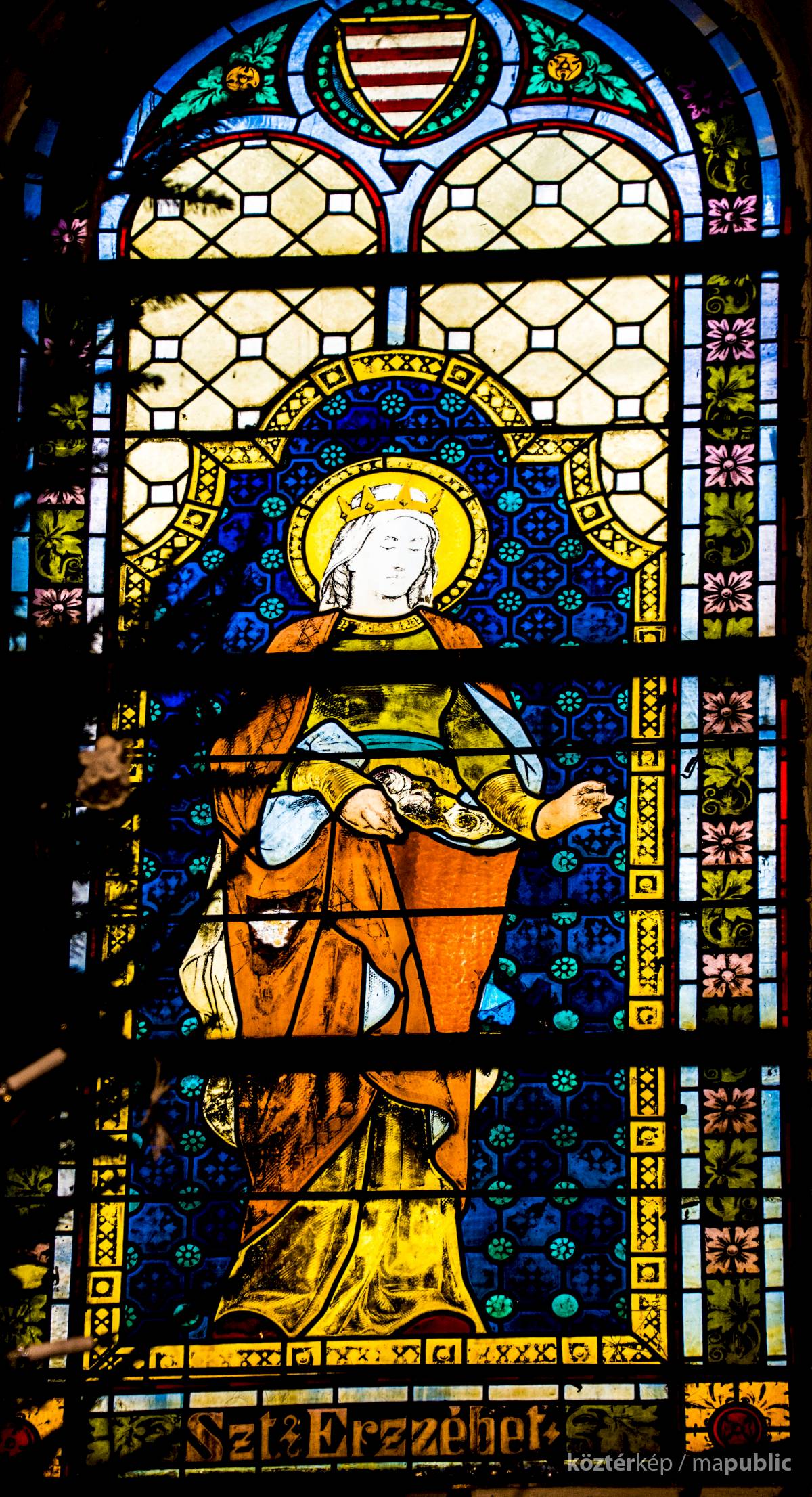üvegablakot találunk. Két Árpád-házi szentet-, Szent Erzsébetet és Szent László királyt ábrázolják.