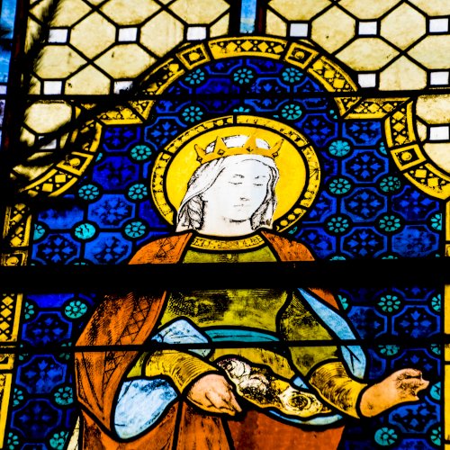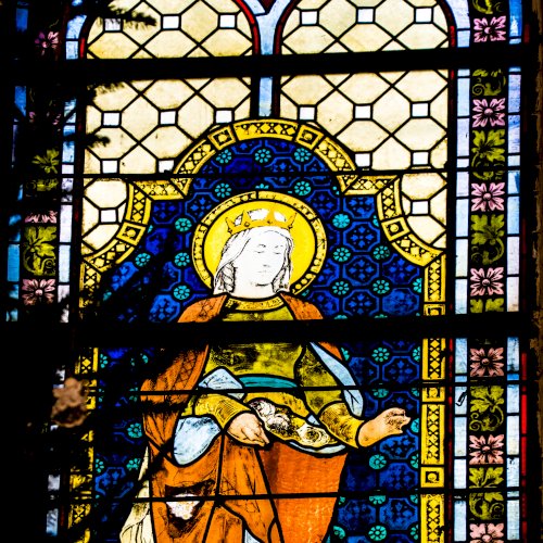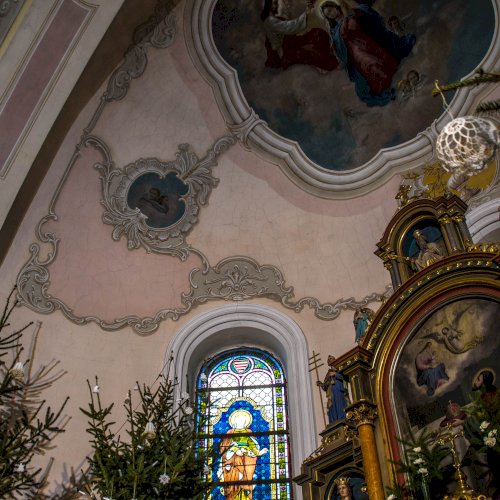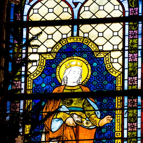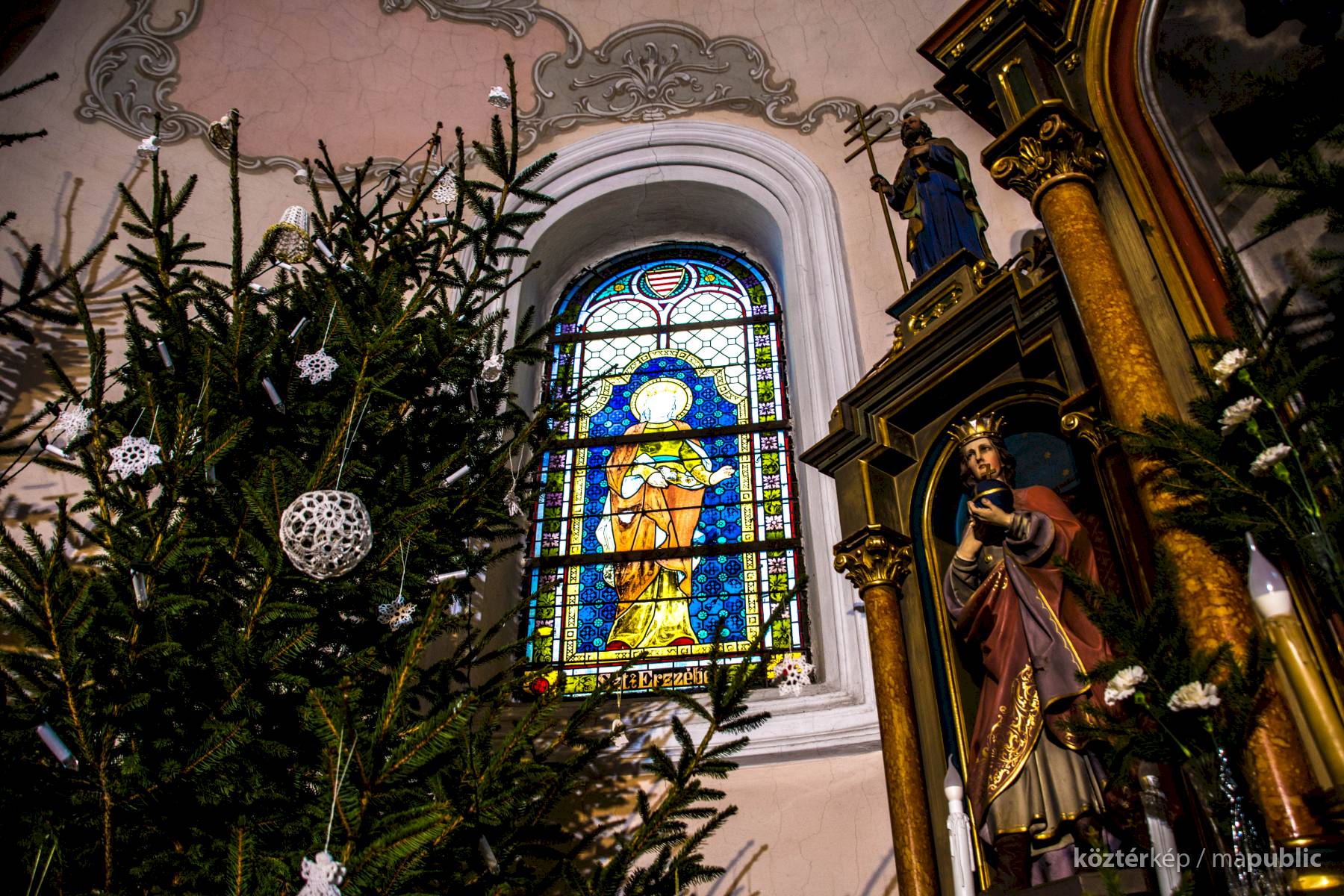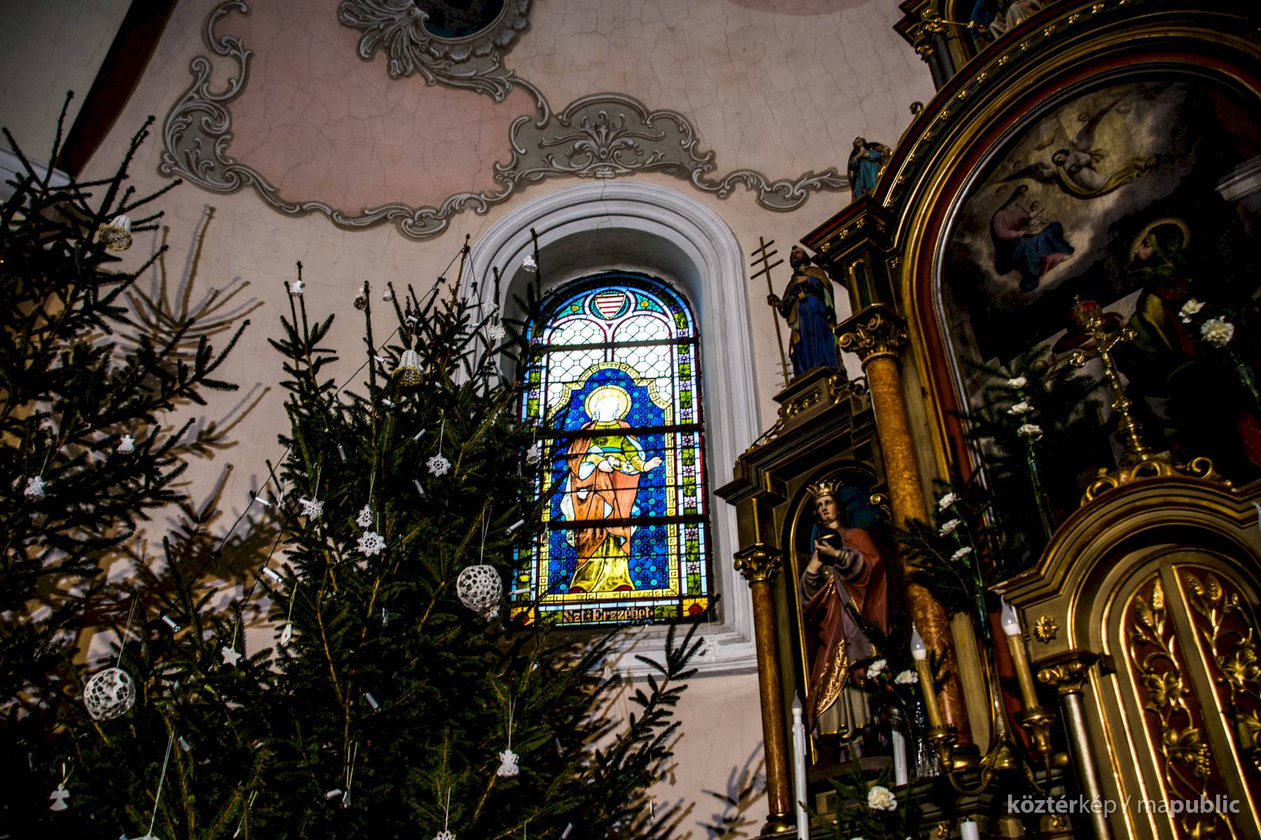 üvegablakot találunk. Két Árpád-házi szentet-, Szent Erzsébetet és Szent László királyt ábrázolják.