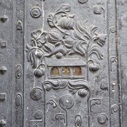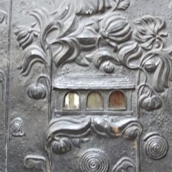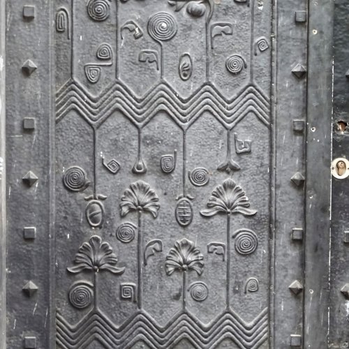 Érdekes kört jártam be, míg elértem a címhez és szemlélgettem a domborított felületű kaput.