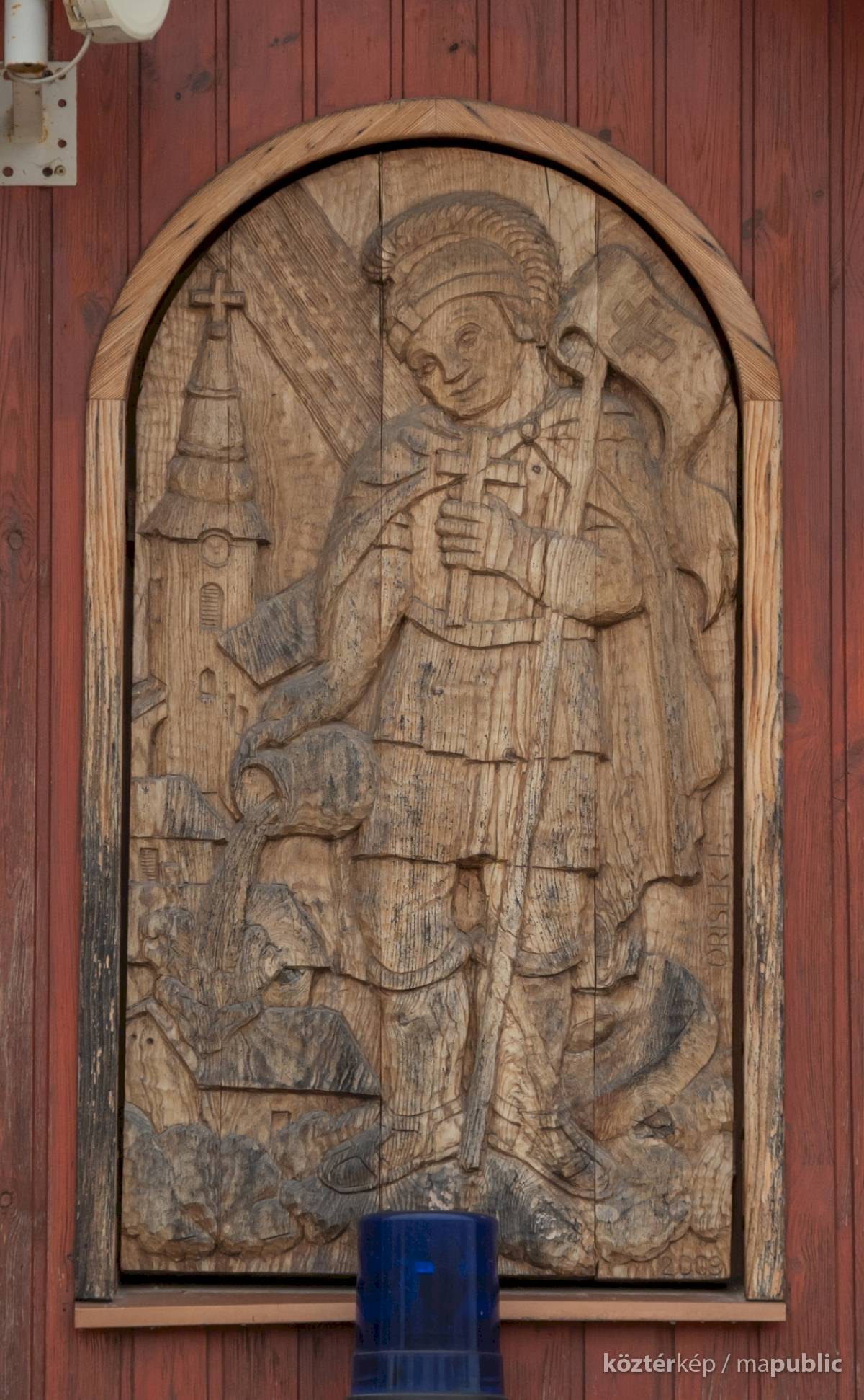 A helyi tűzoltóság homlokzatán található, a tűzoltók védőszentjét szokásos attribútumaival ábrázoló [1] domborművet az "Önkéntes Tűzoltó Egyesület Pázmánd" alapításának 125. évfordulóján, jubileumi tűzoltónap keretében leplezte le az alkotó, Orisek Ferenc fafaragó népművész, Pázmánd község díszpolgára és Kutai Tibor Pázmánd község polgármestere. [2] 2026.02.05. 10:31