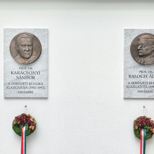"A Petri Gábor Klinikai Tömbben 2025. december 6-án avatták föl a Sebészeti Klinika két korábbi igazgatójának, Prof. Dr. Balogh Ádámnak és Prof. Dr. Karácsonyi Sándornak a domborművét, valamint a szegedi szívsebészet megalapítójának, Prof. Dr. Kovács Gábornak a domborművét." [2]