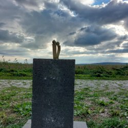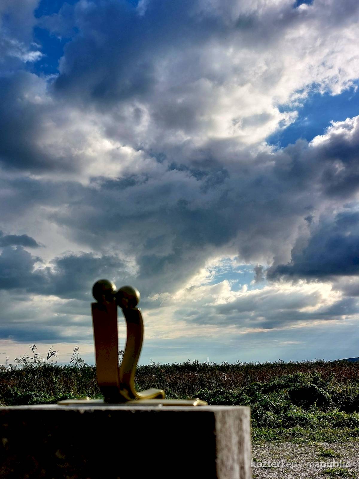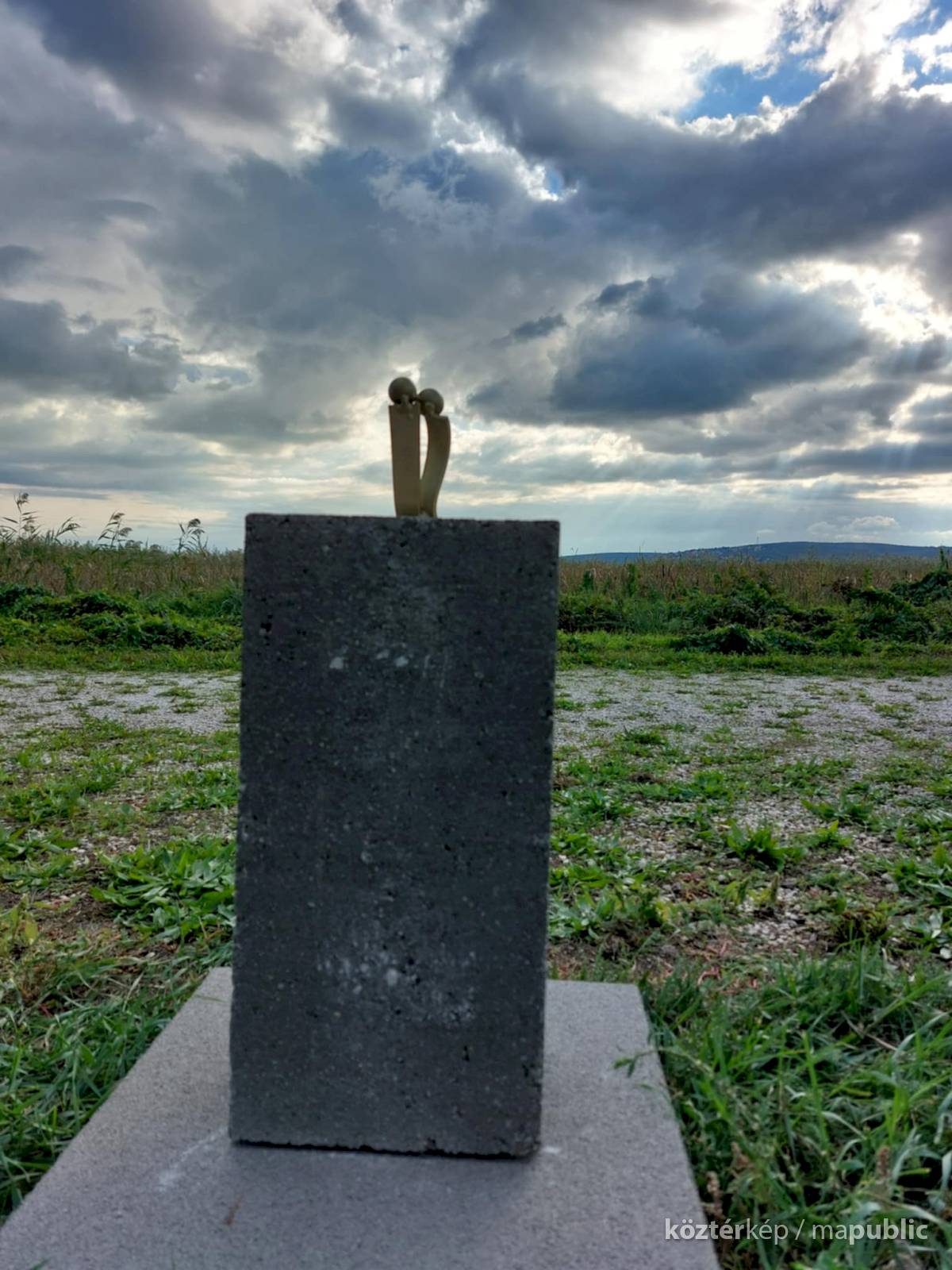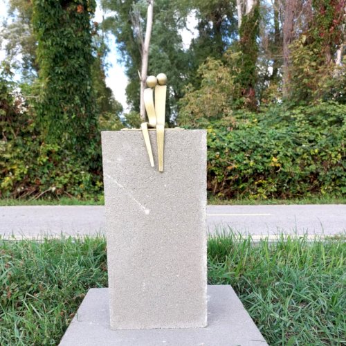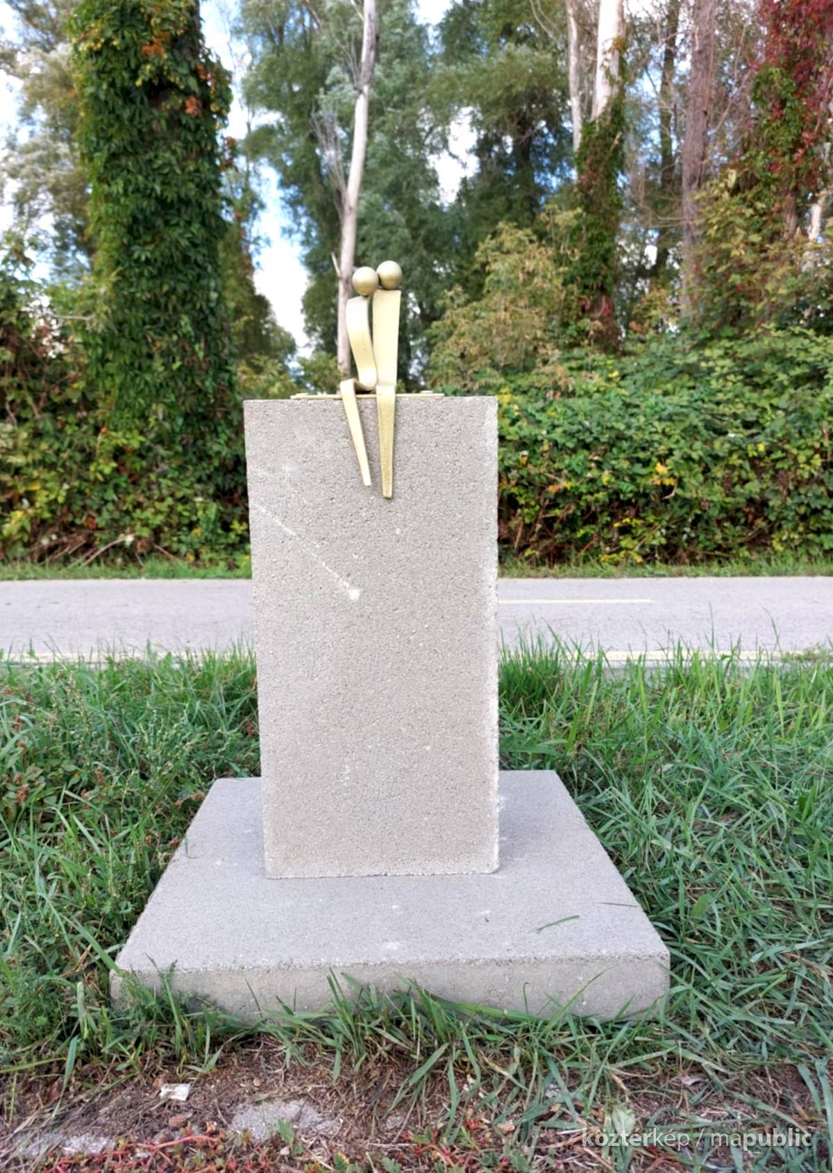 Magas talapzaton (ez, a saját talapzat a sorozatban egyedüli) a két emberalak egymással szoros közelségben, összebújva ül, arccal a Balaton felé, az örökké csodás vizet nézik.