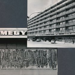 A szalagház kirakati zónáján található falidísz egykoron a megyei idegenforgalom központi irodáját díszítette, ez üzemelt mögötte. Ma - az átlagos fogyasztók alacsony igényeihez alkalmazkodva - melltartó- és bugyogóüzlet működik a korábban kultúrát szolgáló helyiségekben.