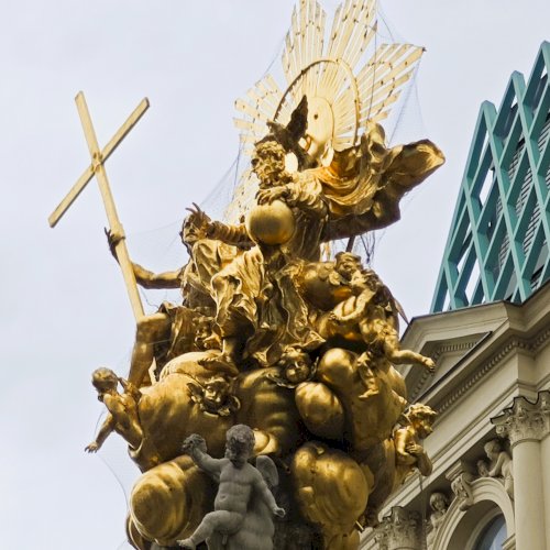 Below the Trinity figure, Burnacini envisioned a cloud pyramid with angel sculptures as well as the kneeling emperor Leopold, praying to a sculpture of faith. Among others, the sculptors Tobias Kracker and Johann Bendel contributed to the column. The column was inaugurated in 1693.