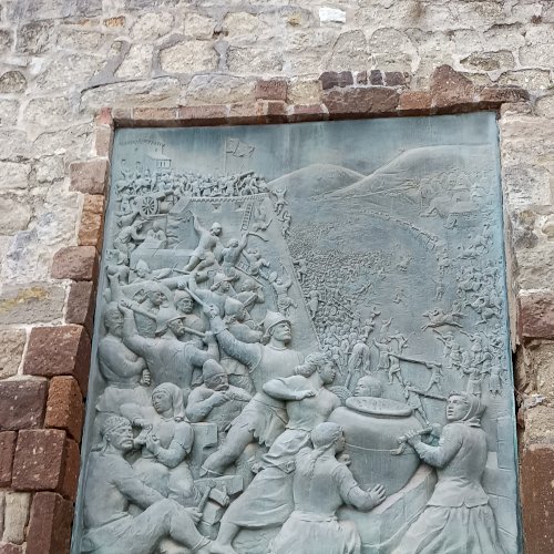 Mintha Gárdonyi Géza Egri csillagok című regényének egy mozgalmas részletét látnánk, szemünk előtt elevenednek meg a csata részletei. Az egri hős várvédő asszonyok küzdelmei, a hős egri katonák, harcosok tettei. Csak hát mindez bronzba öntve.