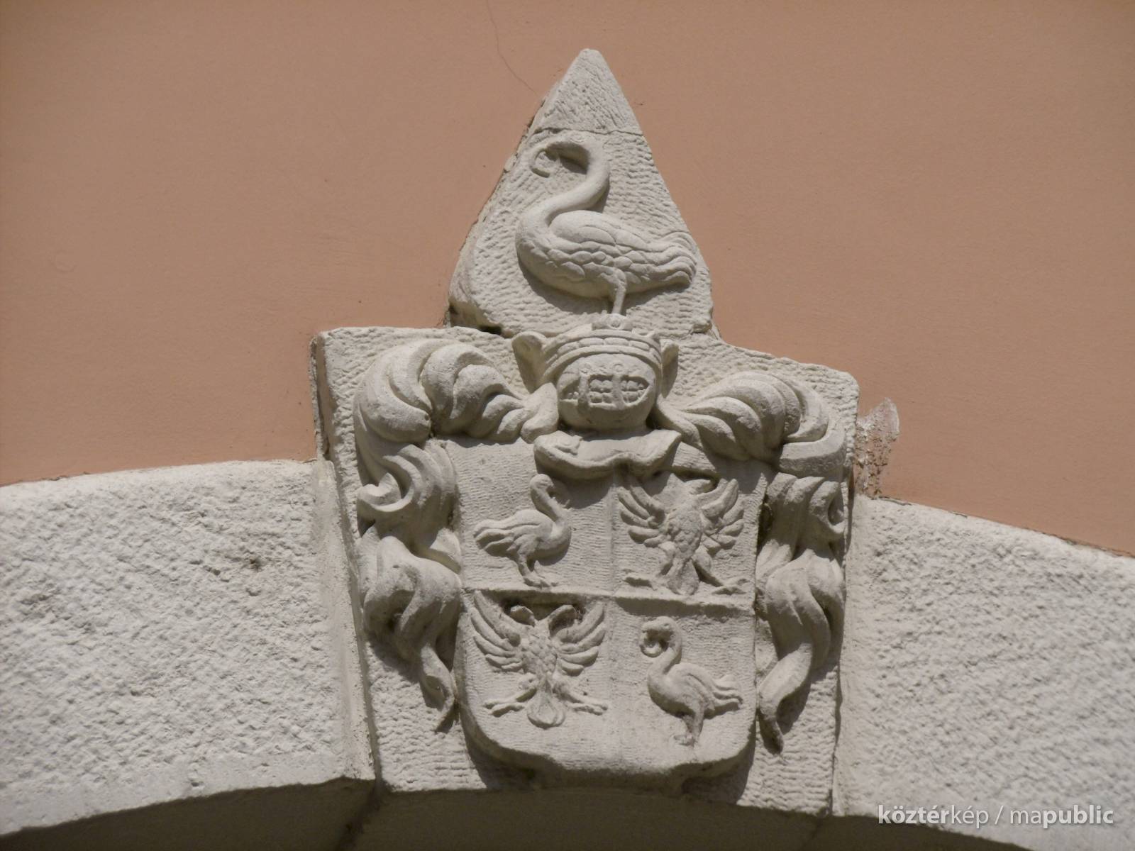 A címer a kapz zárókövén látható: csőrében patkót tartó vadliba (ez szerepel a "klasszikus" fekete Győr útikönyv címlapján). A zárterkély falában az építésről és a építettőről szóló latin nyelvű feliratos kőtábla. Az épület kiváló állapotban van, jelenleg irodaház.