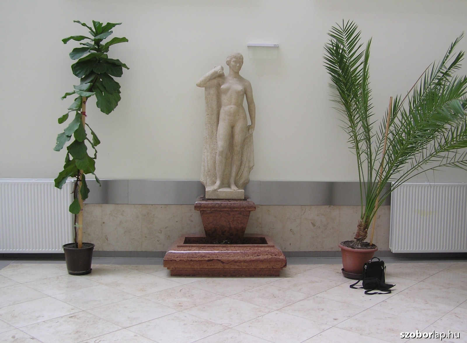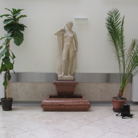 A szobor mostani helye nagyon szép, világos, levegős, méltó hely egy ilyen alkotásnak. Amit észrevettem, hogy a régi helyén egy ún. fülkében volt elhelyezve, ezért a vörösmárvány talapzata a medencének hátul köríves volt, amit most le kellett vágni, tehát hiányzik egy jókora darab belőle. A szobor szépen fel lett újítva és jól mutat a helyén.
