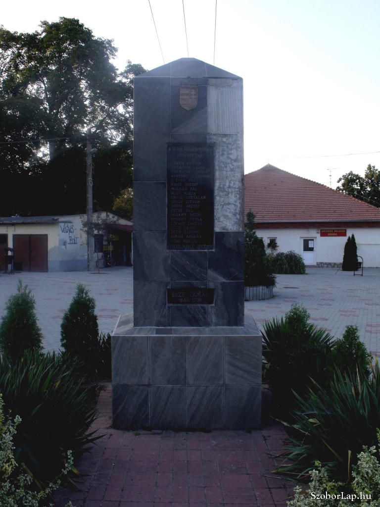 Az emlékmű három utca találkozásánál van felállítva. Három oldalon egy-egy tábla József Attila 1905-1937, Esze Tamás 1660-1708, valamint Petőfi Sándor 1823-1849, a negyedik oldalon emléket állít a II. világháborúban elesett berentei lakosoknak. A márványból készült emlékmű jelzi, hogy az ország második leggazdagabb falujában vagyunk. 2009.10.01. 15:24