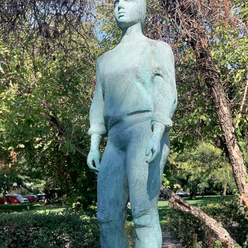 "... Néhány lépéssel odébb áll Makrisz Munkáslány figurája. Ez 1961- ben, tehát később készült. A Kosztolányi Dezső tér ifjúsági parkjába tervezett szobor fiatal munkáslányt ábrázol. A sima, összefoglalt felületű mintázást csak a munkaruha finom ráncai elevenítik. A nadrágos nőalakból a visszatartott szemérmes formák ellenére is sugárzik az érzelem és az öntudat. A karaktert az egész alak hordozza, az arcon sincs erőszakolt kifejezési játék. A Munkáslány megjelenése mai és közvetlen, plasztikailag is érett. Az egyszerűsítés törvény- szerűnek hat, a szokottnál kissé rövidebb karok sem zavaróak, inkább a tömbszerű megjelenést, a tőmondatos nyelvet segítik...." [1]