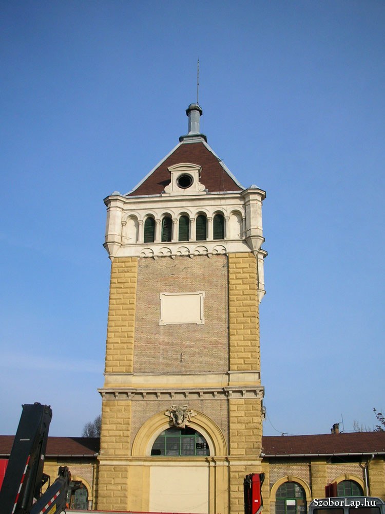 Kinagyítva a képet, én úgy látom hogy a hiányzó dombormű, egy koronás-oroszlános-griffes Székesfővárosi címer lehet!