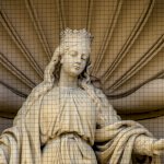 A Mária szobor az Irgalmasok templomának bejárata fölött található.