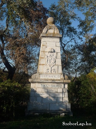 Felirata jelzi, hogy ez itt Erzsébet királyné útja, és a Tokaj-Rakamaz közötti távolság 2,8 km.