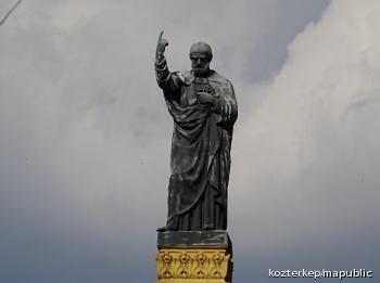 Szent Péter szobra a plébánia oromfalán (
