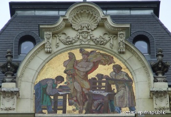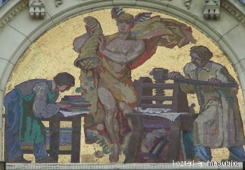 Süsz Dávid könyvész (egykori) nyomdájának homlokzati mozaikja (