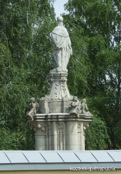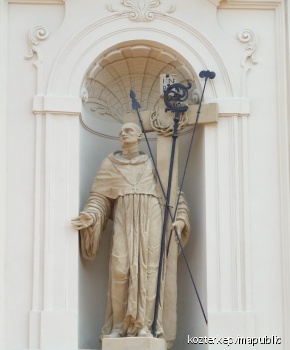 Zirci apátsági templom főhomlokzati szobrai és címerképei (