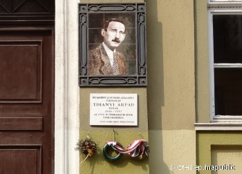 Tihanyi Árpád csempére festett portréja és emléktáblája (