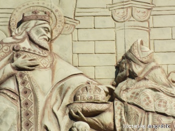 Asztrik püspök átadja Szent Istvánnak a koronát (