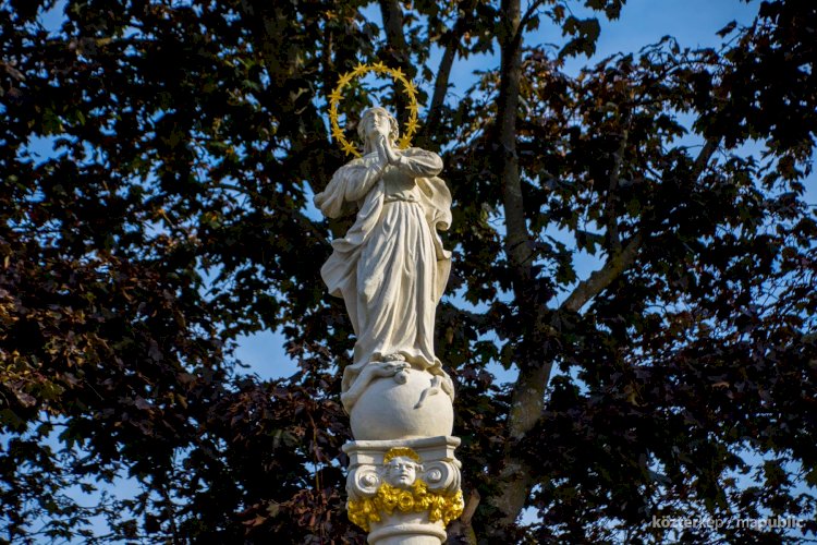 Immaculata-oszlop Szent Joakhim és Szent Anna alakjával (