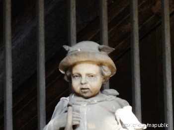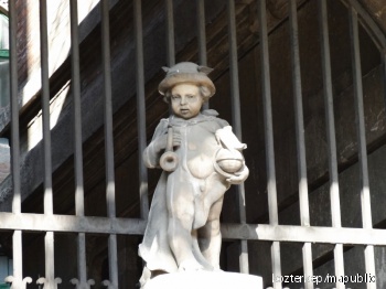 Postáskürtöt és Földgömböt tartó kisfiú (