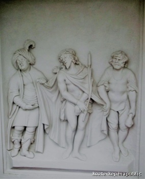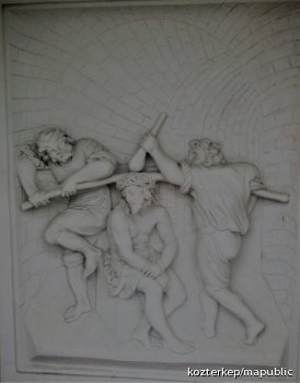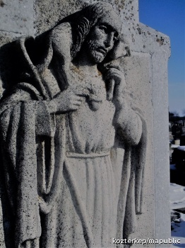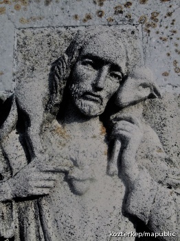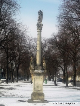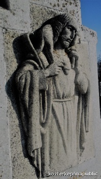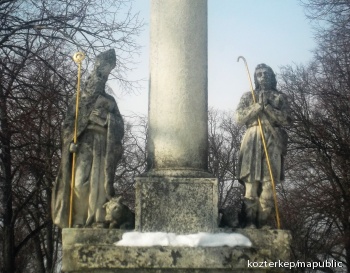 Jó pásztor-oszlop Szent Lénárd és Szent Vendel alakjával (Mosonszentandrás (Sankt Andrä am Zicksee))