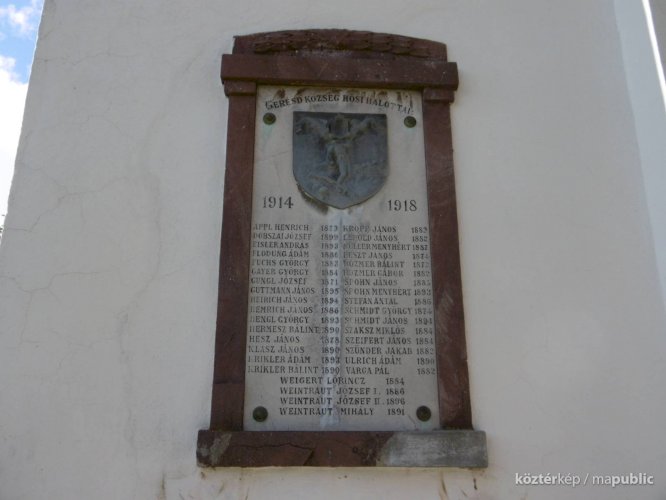 I. világháborúban elesettek emléktáblája (