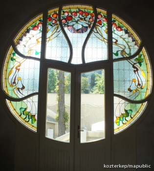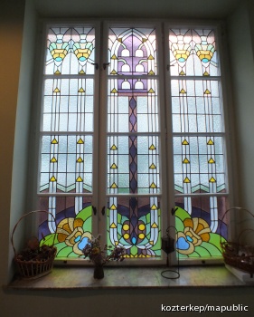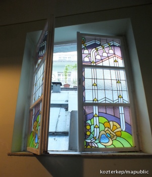 A Gutenberg Otthon lépcsőházának üvegalkotásai (