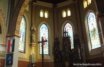 Az Egek Királynéja-templom szentélyének üvegablakai (