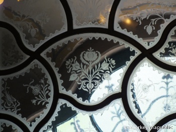 Zeneakadémia emeleti előcsarnok üveg-alkotásai (