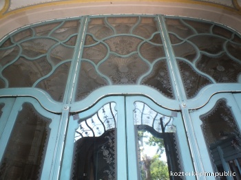 A Földtani és Geofizikai Intézet bejárati üvegajtaja (