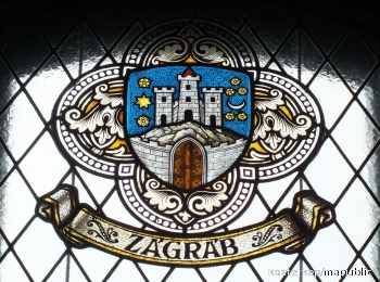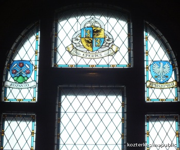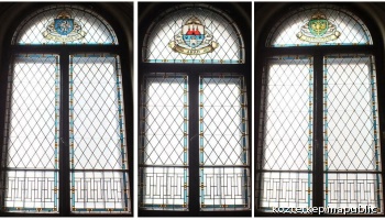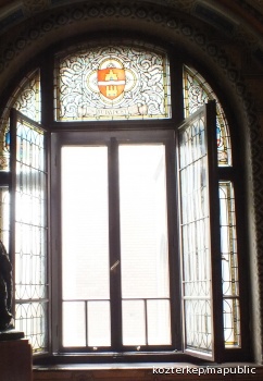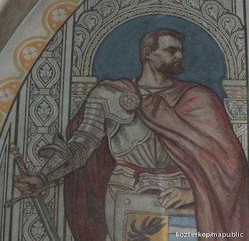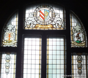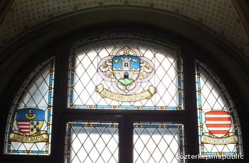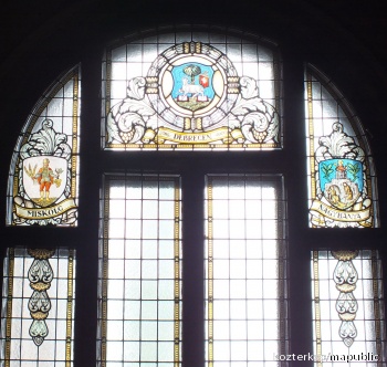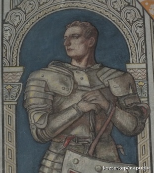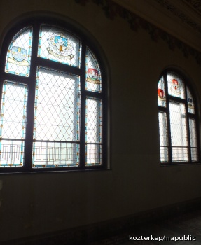 Az Országos Levéltár bejárati csarnokának bal oldali seccoja (