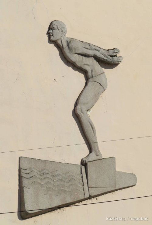 Úszó dombormű az uszoda falán (
