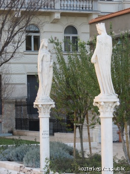 Korsós lány szobra (